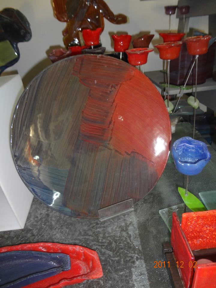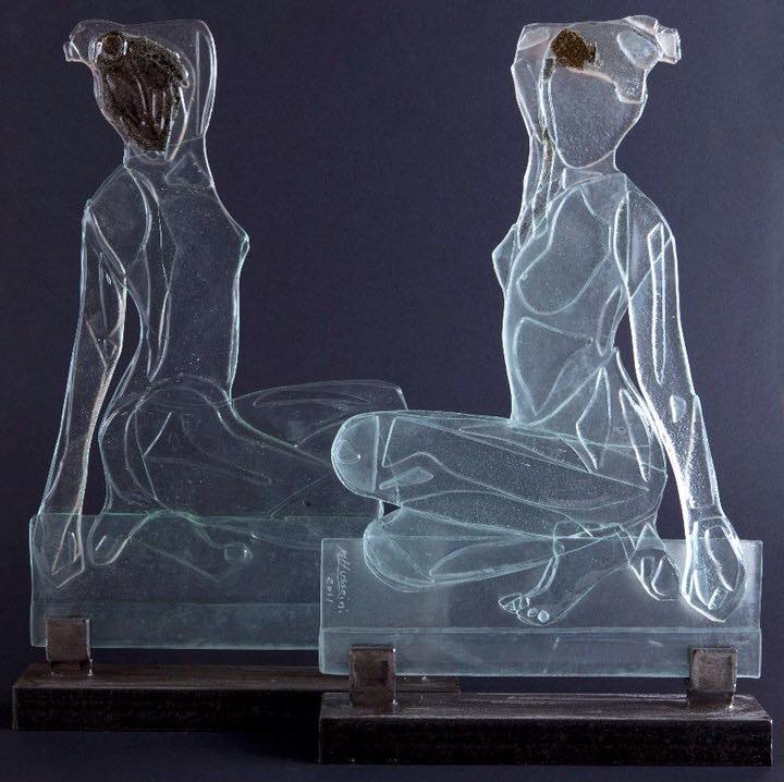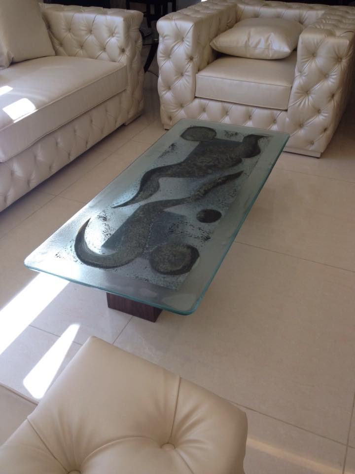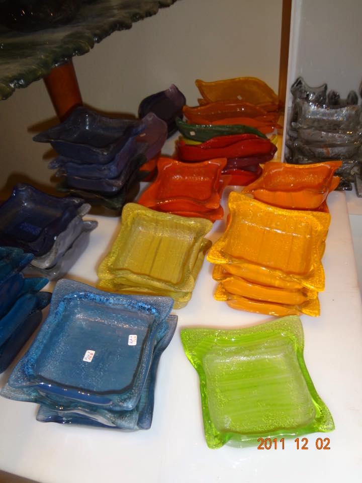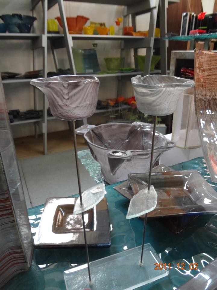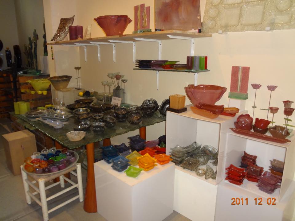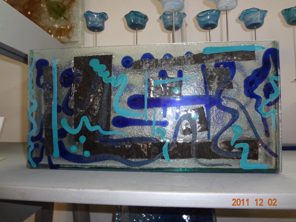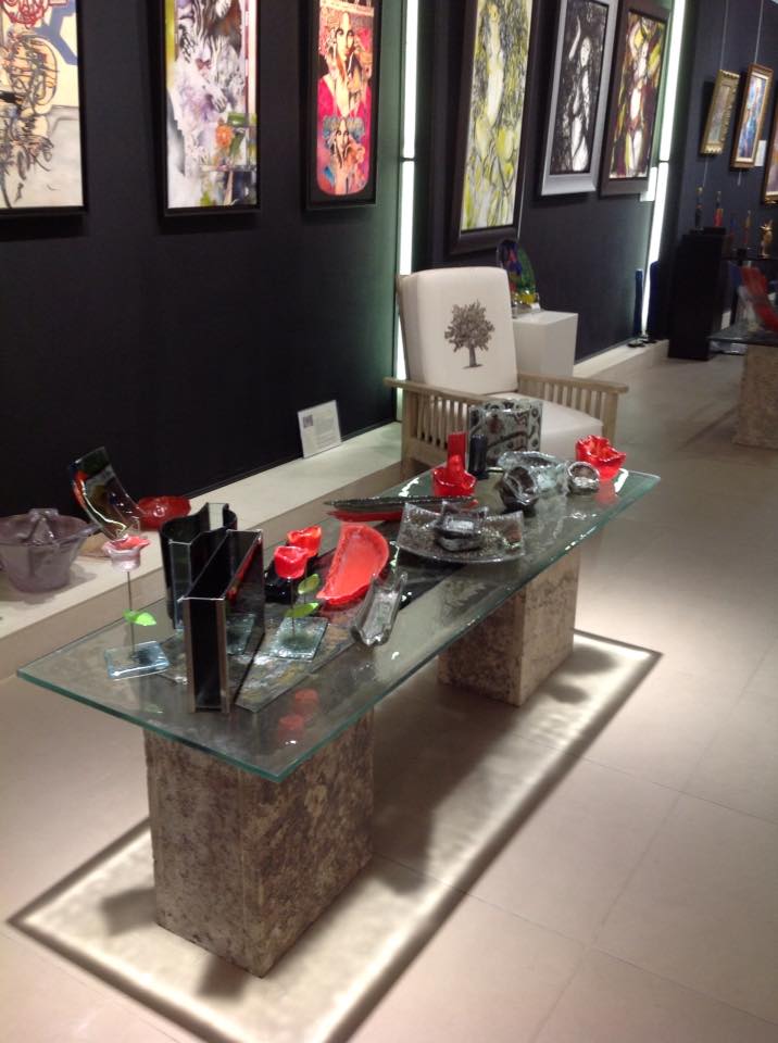 Maya Husseini has a wide collection of glass sculptures, glass furniture and fused plates.