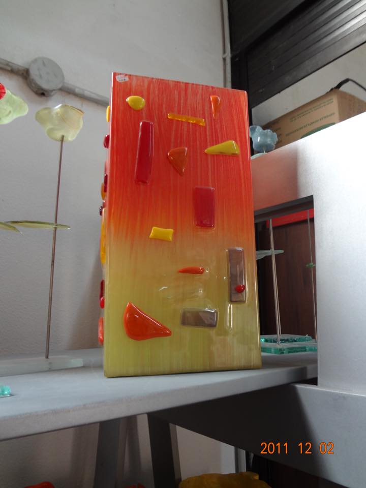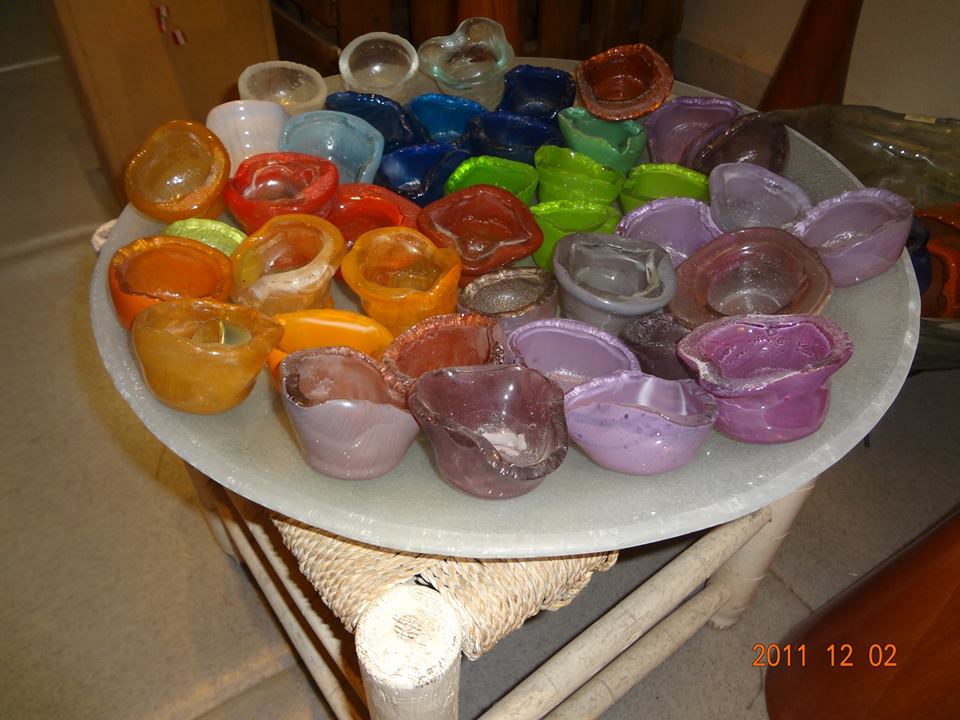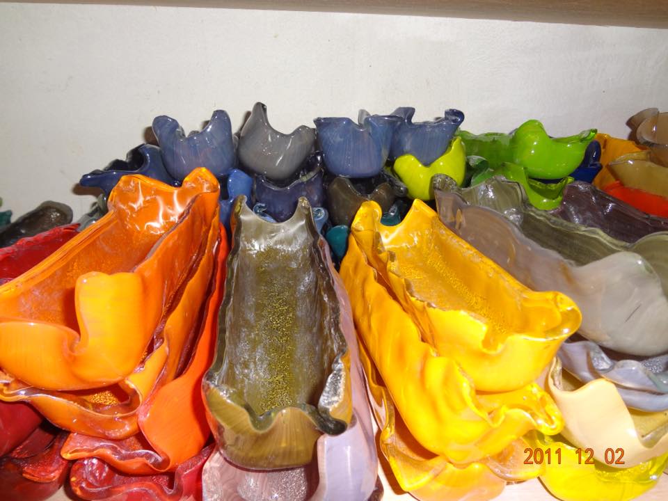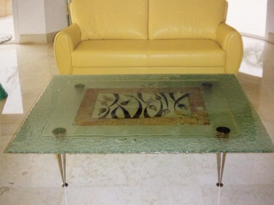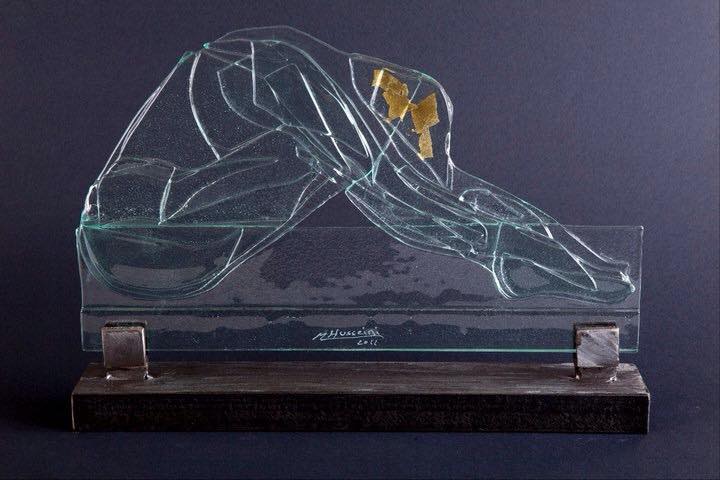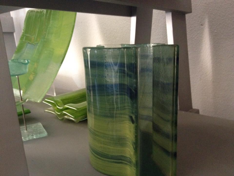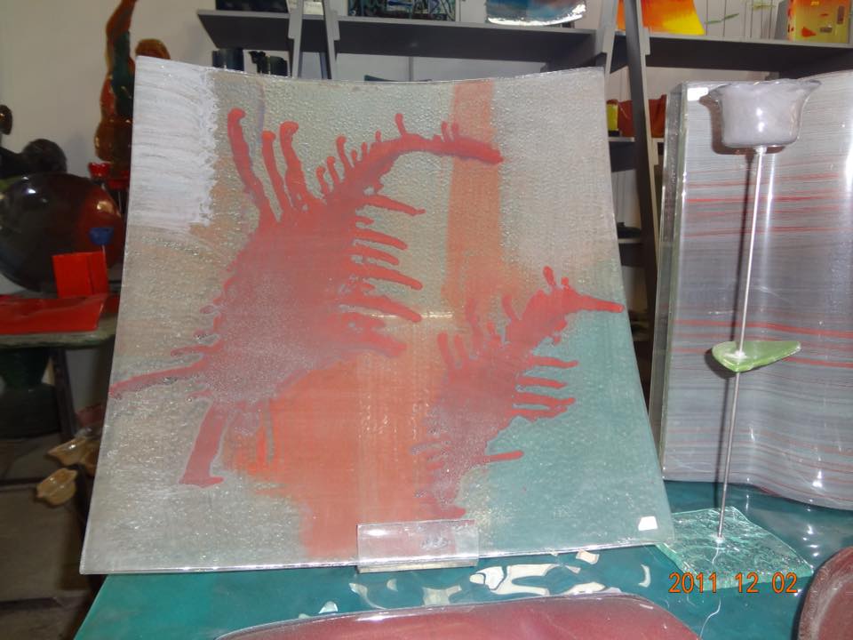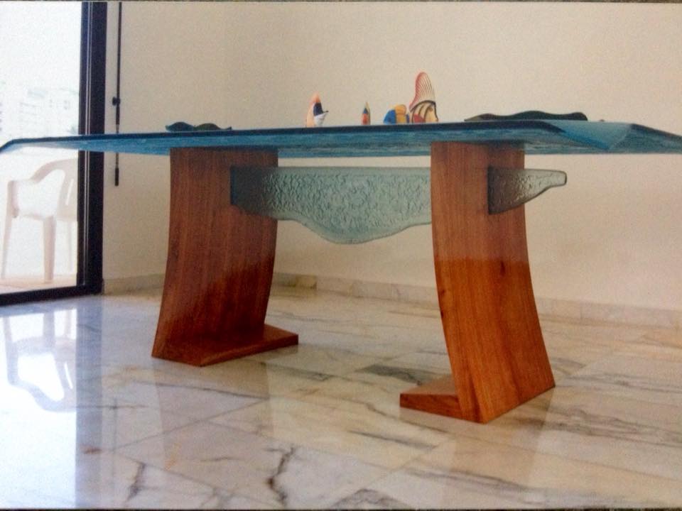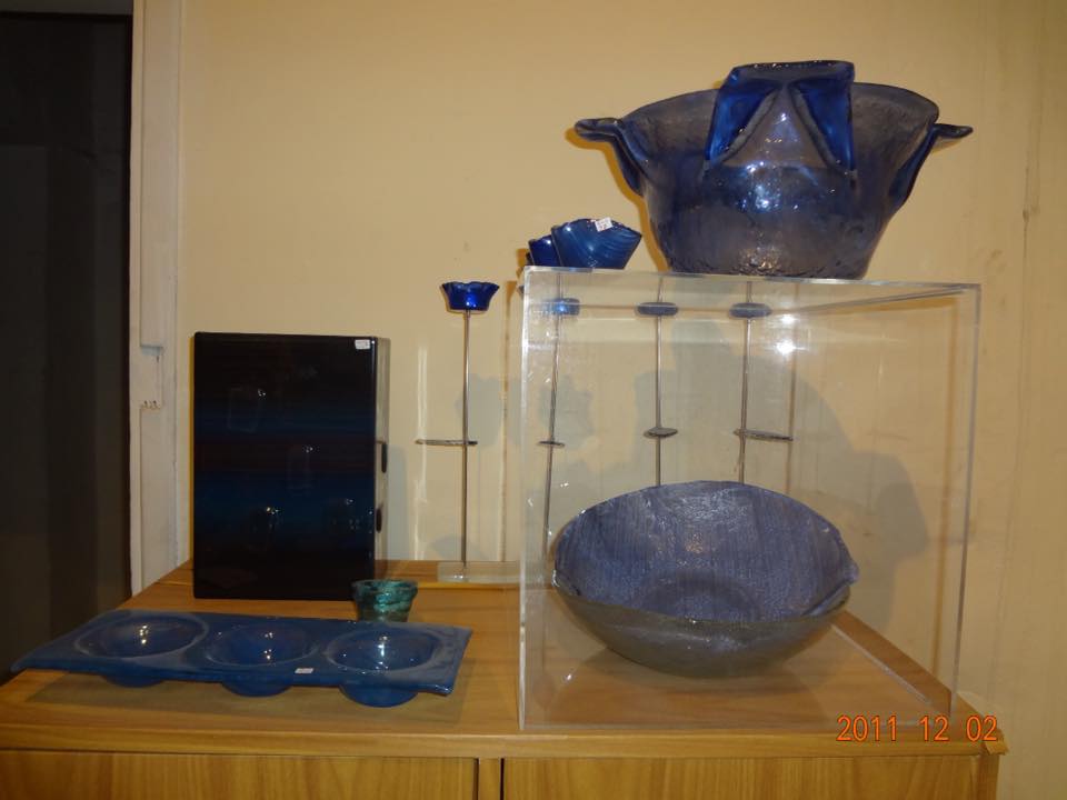 Maya Husseini has a wide collection of glass sculptures, glass furniture and fused plates.