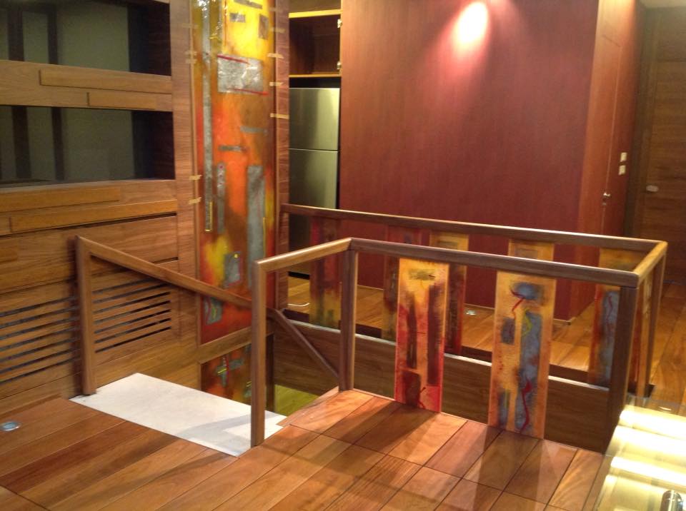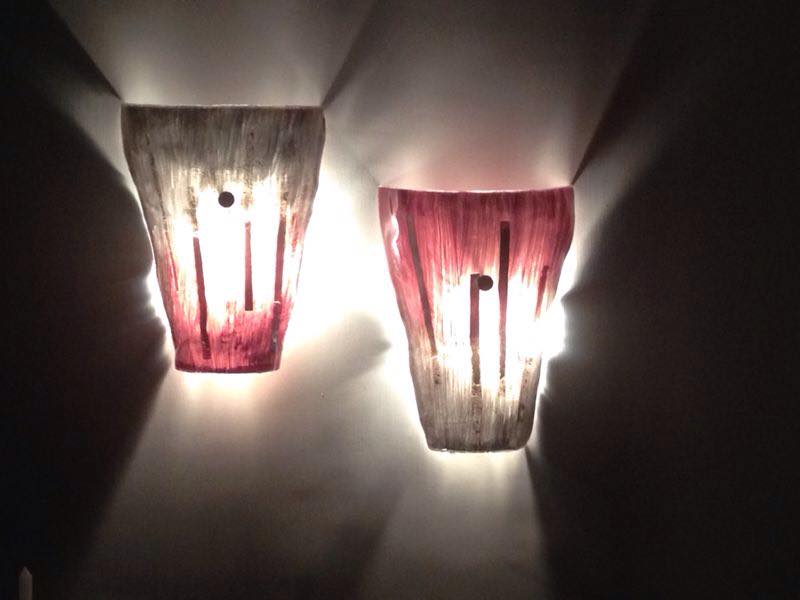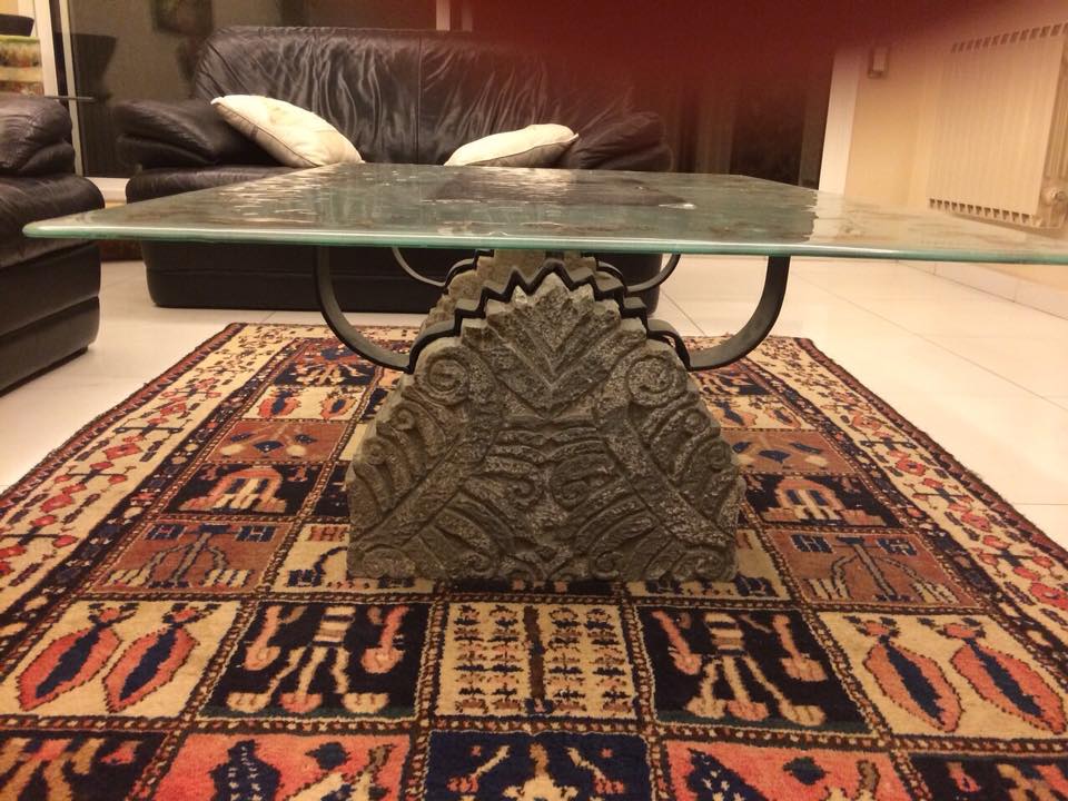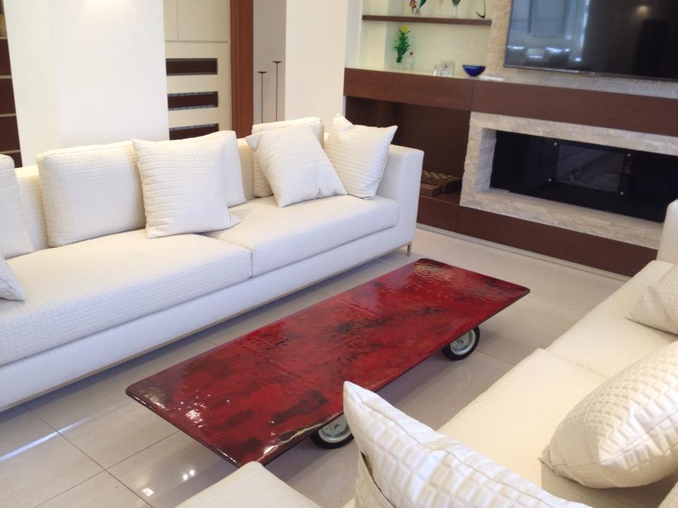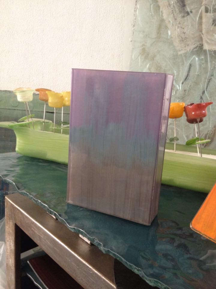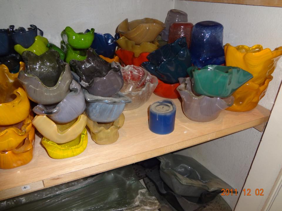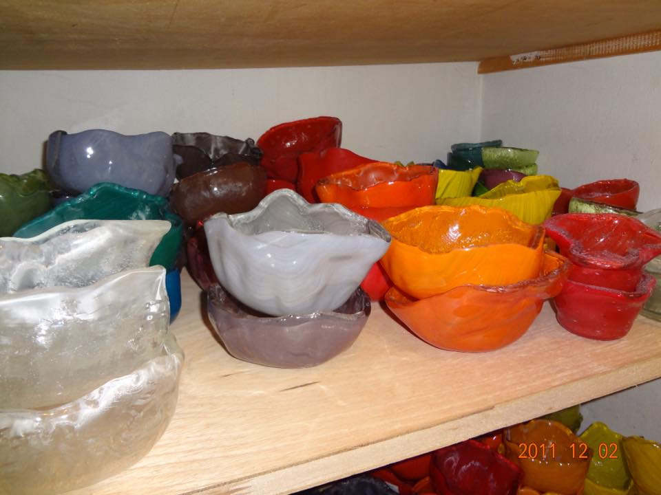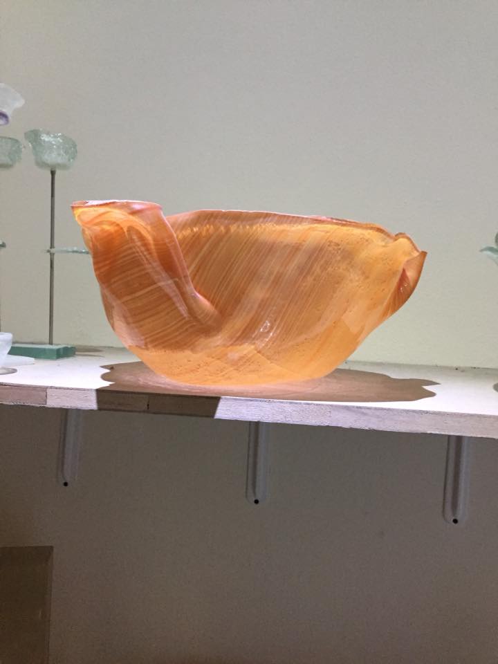 Maya Husseini has a wide collection of glass sculptures, glass furniture and fused plates.